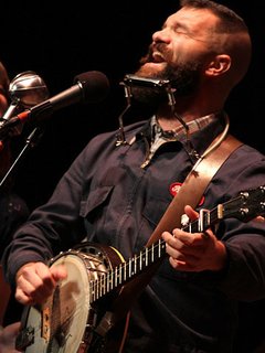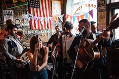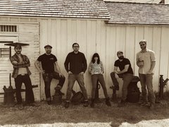The Defibs from left: David Dawda, Bug Jennings, Justin Smitty, Metalbelly, Roadblock, Erin Bru, Mike Riddleberger